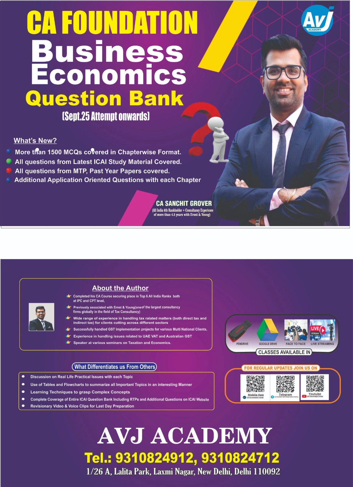 Business Economics Question Bank: Mastering Concepts with Practice | CA Foundation – AVJ Academy